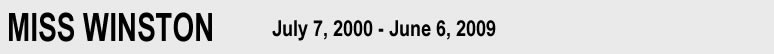 Miss Winston was my first dog. She started life out as a stray puppy, but by 12 weeks old she found a permanent home. She taught me so much about animal behavior. She was a very independent dog and a quick study. She was always willing to try something once which opened my world to so many dog related activities. Winst, not a day goes by that I don't think of you. Your life was taken away much too soon, but the memories you left behind will live on forever in my heart.